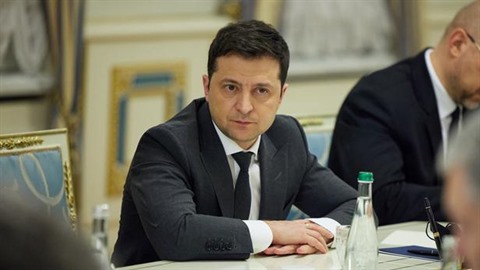 | Le président ukrainien Volodymyr Zelensky, le 22 février 2022. |
