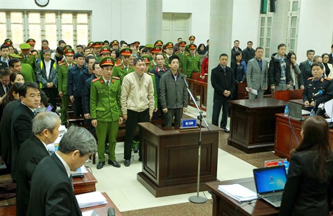 | L'accusé Trinh Xuân Thanh (centre) et ses coaccusés devant le Tribunal populaire de Hanoï |