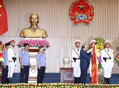 Lors de la cérémonie, par délégation du président de la République, le Premier ministre Nguyên Xuân Phuc a épinglé l'Ordre Hô Chi Minh sur le drapeau traditionnel du secteur du parquet populaire.