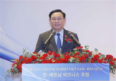 >>Vuong Dinh Huê et Park Byeong-seug assistent au Forum des entreprises à Séoul
