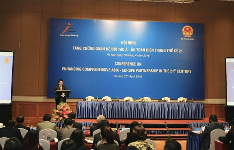 | La conférence sur le renforcement du partenariat global Asie - Europe au XXIe siècle, le 20 avril à Hanoi. |