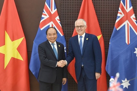| Le Premier ministre Nguyên Xuân Phuc (gauche) et le Premier ministre australien Malcolm Turnbull. |