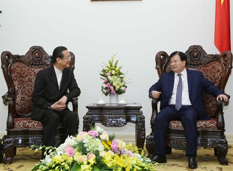 | Le vice-Premier ministre Trinh Dinh Dung (droite) et le président du groupe thaïlandais Amata, Vikrom Kromadit, le 3 novembre à Hanoï. |