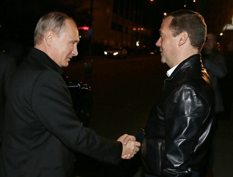 | Le président russe Vladimir Poutine (gauche) et le Premier ministre Dmitri Medvedev, le 18 septembre à Moscou. |