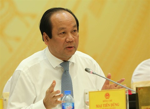 | Le ministre Mai Tiên Dung, responsable du bureau gouvernemental, lors de la conférence de presse du gouvernement, le 3 mai à Hanoï. |