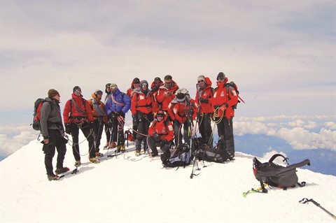 | Eric Balez (1er à droite), au sommet du Mont Blanc avec l’équipe. |