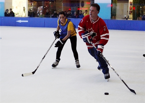 | Un match amical de hockey sur glace Canada-Vietnam sur la patinoire à Hanoi. |