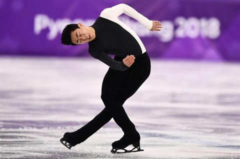 | L'Américain Nathan Chen lors du programme court messieurs de patinage artistique aux JO, le 16 février 2018 à Gangneung. |