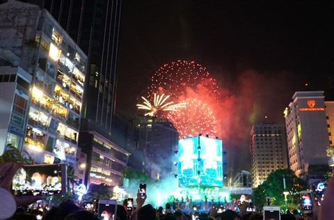 | Feux d'artifice à Hô Chi Minh-Ville à la Nouvelle Année 2018. |