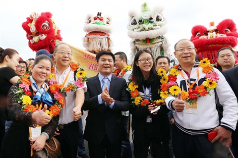 | Des touristes étrangers en visite de Dà Nang (Centre) à l'occasion du Nouvel An 2018. |