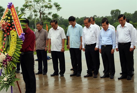 | Le vice-Premier ministre permanent Truong Hoà Binh (3e à droite) au Mémorial dédié aux Mères héroïnes dans la province de Quang Nam (Centre), le 24 juillet. |