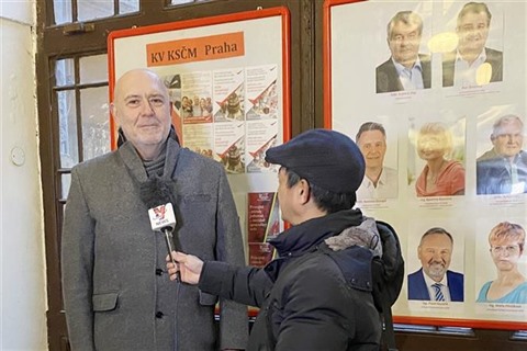 | Leo Luzar, membre du Parti communiste tchèque – Morava, répond au correspondant de la VNA en République tchèque. |