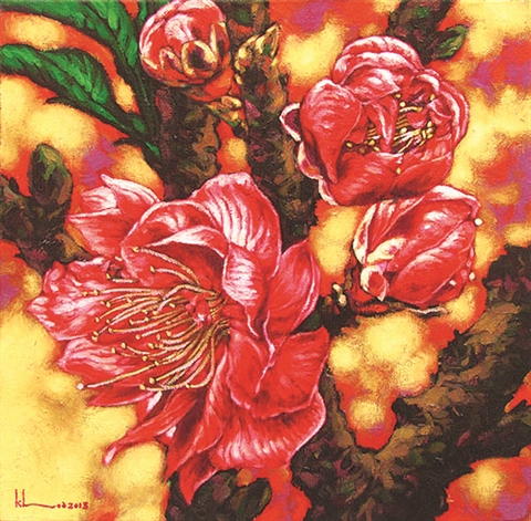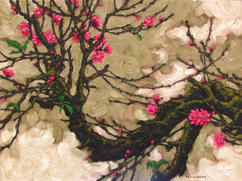 La récente exposition de Khoa avait pour thème la fleur de pêcher. Des dizaines de peintures ont été présentées, très variées. Les dào bich (aux fleurs rouges) et les dào phai (fleurs rose clair) rivalisaient de beauté et de charme. «J’éprouve toujours de la nostalgie pour cette fleur attachée étroitement à mon enfance, confie l’auteur. Le sort des jardins de pêcher à Hanoi m’a peiné, à tel point que j’ai désiré immortaliser, au moyen du pinceau, l’image de ces fleurs printanières». Les peintures exposées ne sont qu’une partie de ses œuvres inspirées des fleurs de pêcher. Nguyên Huu Khoa ne cache pas son ambition d’enrichir encore sa collection, et de monter d’autres expositions sur les hoa dào.