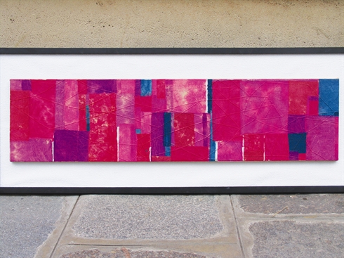| L’œuvre Épanouissement, de format 30 x 120 cm, sur le papier dó, est marouflée sur la toile. |