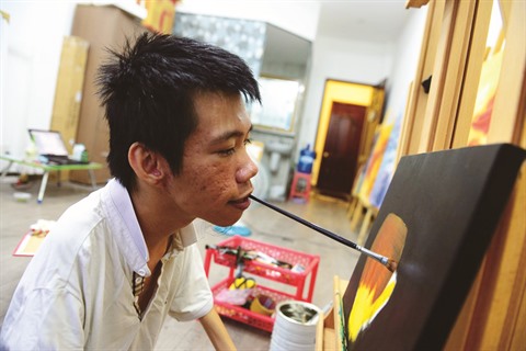 «Ma tante est une peintre spécialisée dans les peintures murales. C’est elle qui m’a enseigné les premiers coups de pinceaux. Elle a aussi ouvert une classe de dessin réservé aux enfants handicapés du village d’enfants SOS Hoà Binh», partage-t-il.
