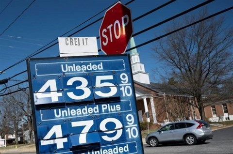 | Une voiture à côté d'une station d'essence à Annapolis dans le Maryland (États-Unis) le 14 mars, alors que les prix des carburants s'envolent. |