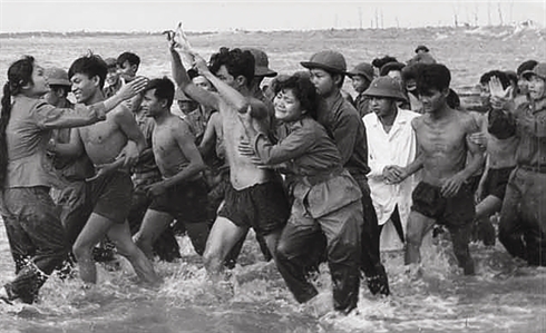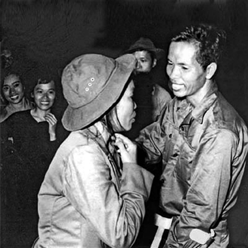Comme tant d’autres journalistes de guerre, Chu Chi Thành, ancien reporter-photographe de l’Agence Vietnamienne d’Information (AVI), a passé durant sa jeunesse de longues années sur le champ de bataille à couvrir l’événement. Appareil photo en bandoulière, il a immortalisé ces moments historiques de la résistance nationale anti-américaine, pour la réunification du pays. «Retour victorieux de la prison ennemie», l’œuvre qui lui vaut aujourd’hui tant d’honneur, relate, à travers quatre photos, un «moment inoubliable» au printemps 1973, où des militants détenus par l’ennemi sont alors libérés sur la rivière Thach Han (province de Quang Tri), et se précipitent les pieds dans l’eau dans les bras de leurs compagnons d’armes. Une scène rendue possible grâce à l’Accord de Paris - qui met un terme à la guerre au Vietnam - signé en février 1973 entre les belligérants. Un des clichés décrit les retrouvailles émouvantes d’un couple de militants détenus séparément 13 ans durant.