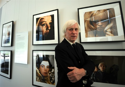 | Le photographe canadien Douglas Kirkland devant certaines de ses photos exposées à l'Espace Annenberg, le 19 mars 2009 à Los Angeles. |