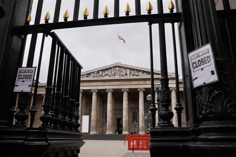 | Vue du British Museum fermé, à Londres, au Royaume-Uni, le 18 mars. |