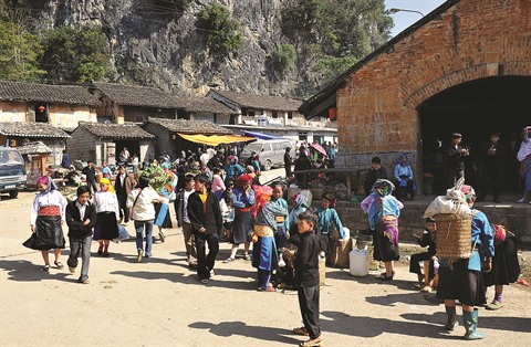 | Le marché de Dông Van vaut le détour. Lieu d’échange de produits, c’est aussi un lieu de rencontre. |