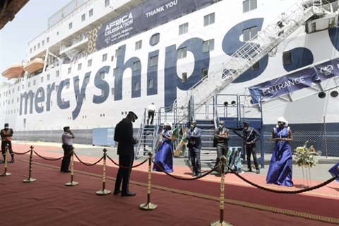 Le président sénégalais Macky Sall a formellement accueilli le Global Mercy lundi matin 30 mai lors d'une cérémonie, en présence du président de la Guinée-Bissau, Umaro Sissoco Embalo, et du président des Comores Azali Assoumani. Les ministres de la Santé du Sénégal, de Guinée-Bissau, de Gambie, du Cameroun et du Congo-Brazzaville étaient également présents.