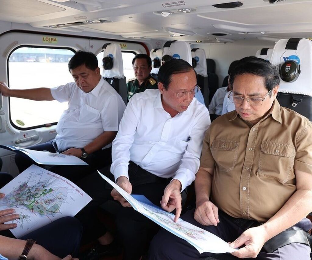 Auparavant, le Premier ministre Pham Minh Chinh avait pris un hélicoptère pour inspecter la planification, les grands projets de la province de Bà Ria-Vung Tàu, notamment ceux de la région de Bai Sau, de l'aéroport de Go Gang, de la zone urbaine de Go Gang - Long Son, du port de Cái Mép.