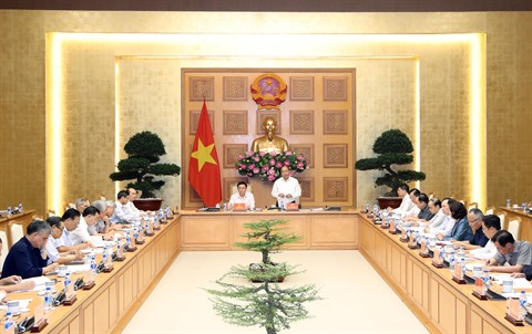 | Le Premier ministre Nguyên Xuân Phuc (debout) lors la réunion périodique du Conseil consultatif national sur les politiques monétaires, le 18 juillet à Hanoï. |