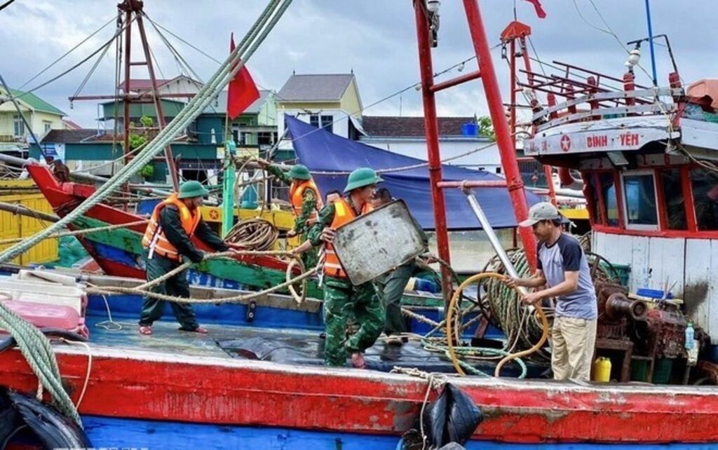| Les officiers et les soldats du poste de garde-frontière de Diên Thanh de la province de Nghê An ont déployé des forces pour aider les pêcheurs à amener les bateaux dans des abris anti-tempête, à ancrer, à amarrer les véhicules. |