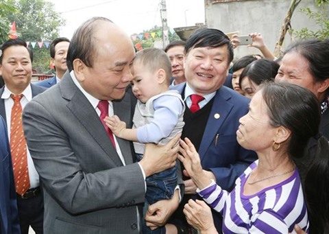 | Le Premier ministre Nguyên Xuân Phuc (1er plan, gauche) rend visite à des habitants de Hung Yên (Nord) à l'occasion du Têt traditionnel. |