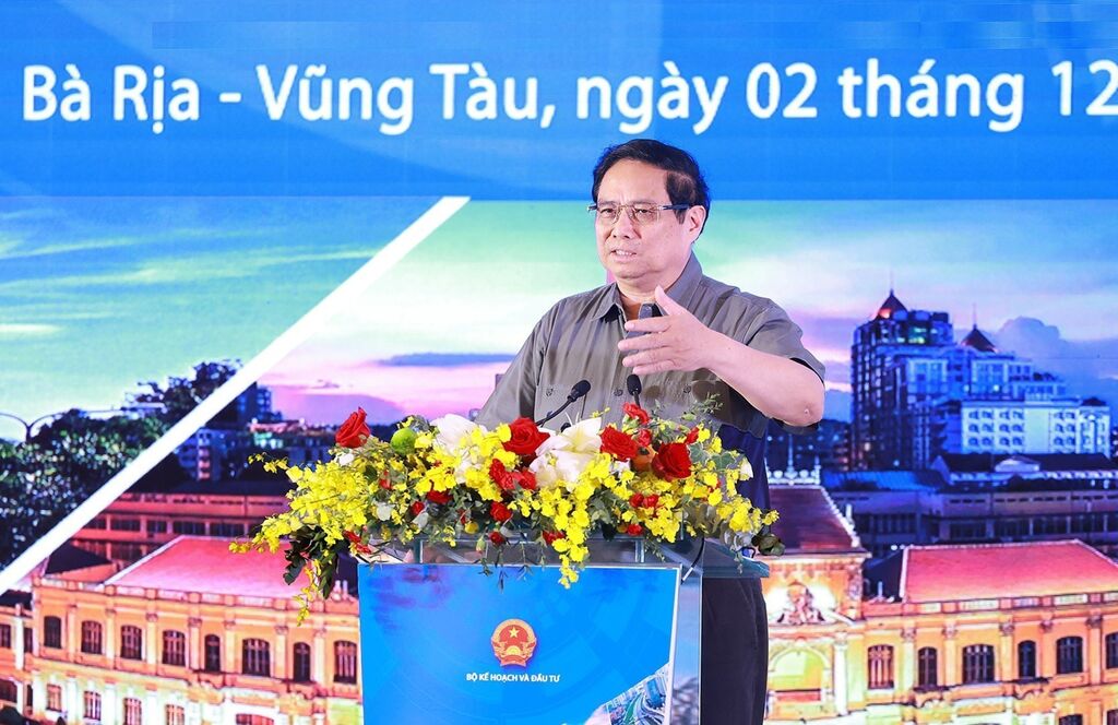 | Le Premier ministre Pham Minh Chinh s'exprimant à la 5e Conférence du Conseil régional de coordination du Sud-Est. |