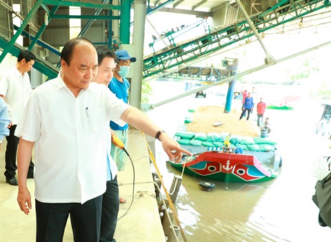 | Le PM Nguyên Xuân Phuc en visite de l’Usine de transformation vivrière Thanh Tin dans la ville de Soc Trang, le 23 avril. |