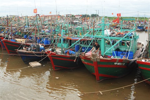 | Les bateaux évitent le typhon au port de pêche à Dô Son (Nord). |