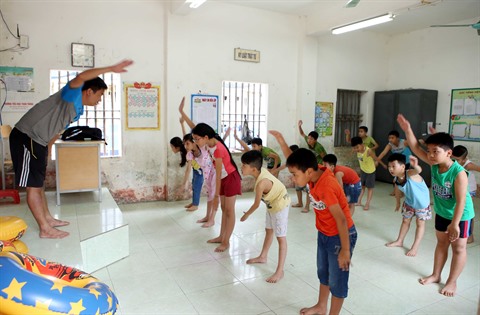 | Initier à la natation à l'école primaire de Kim Dông, dans la province de Hung Yên (Nord). |
