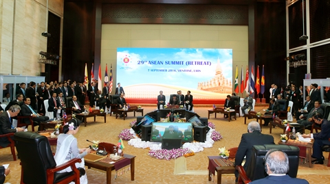 | Vue générale du 29e Sommet de l'ASEAN, le 7 septembre à Vientiane, au Laos. |