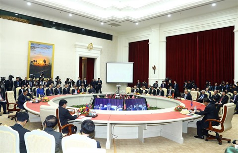 | Le Premier ministre Nguyên Xuân Phuc (centre) au 2e Sommet de coopération Mékong - Lancang (MLC), le 10 janvier à Phnom Penh. |