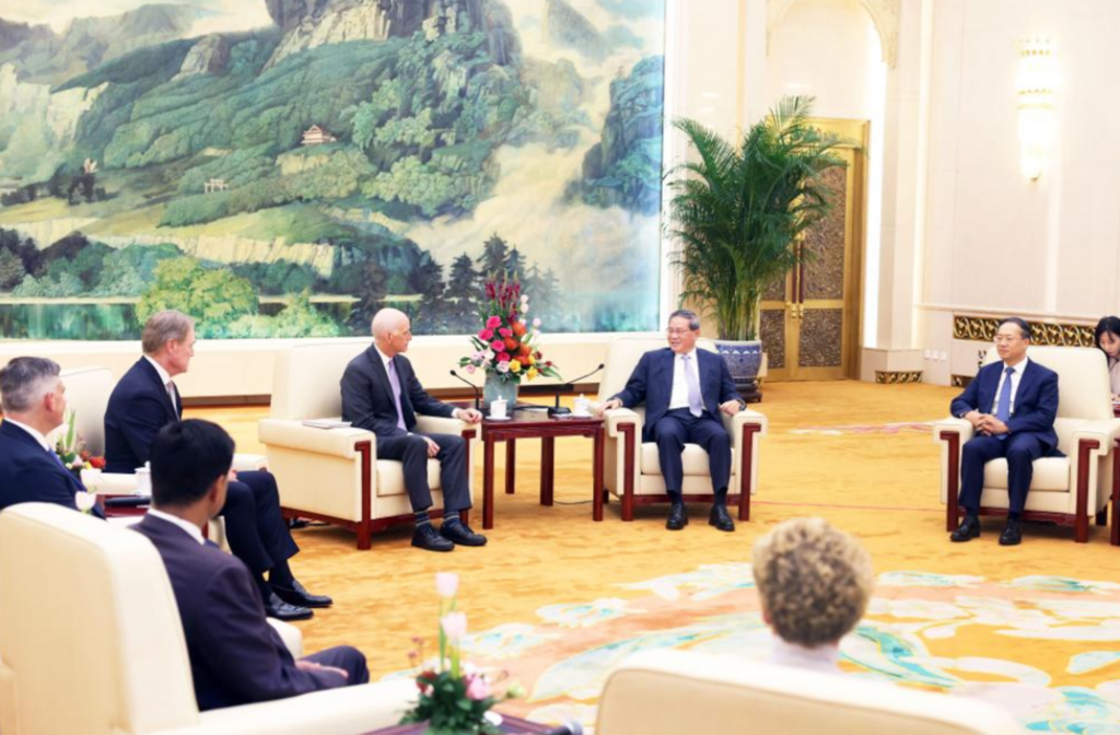 | Le Premier ministre chinois Li Qiang (2e, droite) lors de la rencontre avec une délégation du Congrès des États-Unis, le 21 septembre à Pékin. |