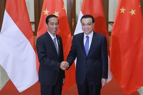 | Le Premier ministre chinois Li Keqiang et le président indonésien Joko Widodo (gauche). |