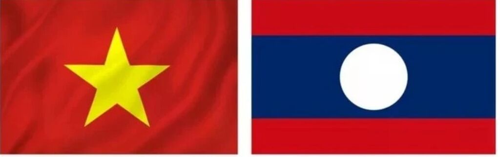 | Drapeaux du Vietnam et du Laos. |