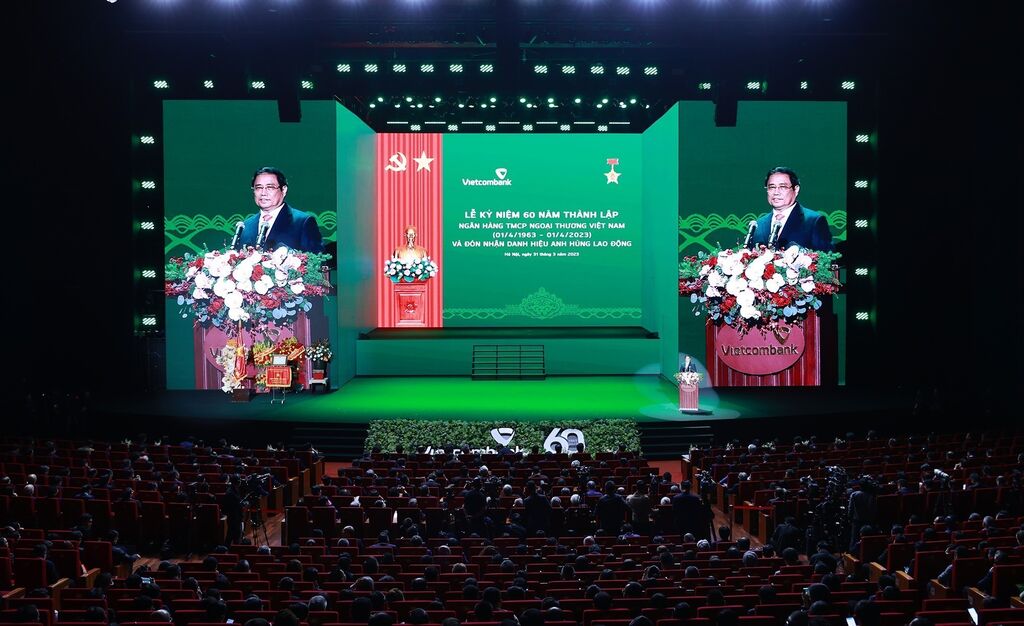 Lors de la cérémonie, le chef du gouvernement a remis à Vietcombank le titre de Héros du travail, décerné le 15 février 2023 par le Parti et l’État pour ses réalisations exceptionnelles dans la période de rénovation.
