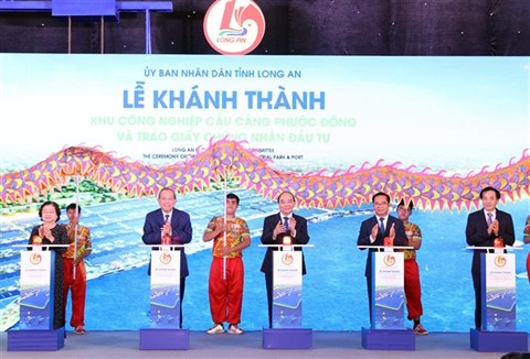À cette occasion, le Premier ministre Nguyên Xuân Phuc a reçu les consulats généraux des États-Unis, de République de Corée, d'Inde à Hô Chi Minh-Ville et des dirigeants de sociétés multinationales comme GS Energy, Alibaba opérationnelles à Long An.