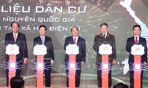 | Le Premier ministre Nguyên Xuân Phuc (centre) au lancement de la base de données nationales sur la population et du système de fabrication, d'émission et de gestion des cartes d'identité personnelles. |
