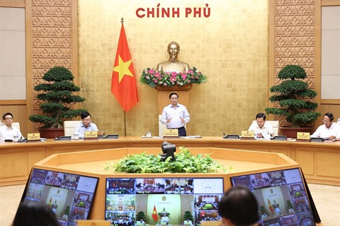 | Le Premier ministre Pham Minh Chinh (debout) préside la réunion périodique de juillet du gouvernement. |