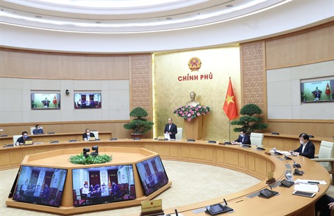 | Réunion en ligne de la Permanence du gouvernement sur la prévention et la lutte contre le COVID-19, le13 avril à Hanoï. |