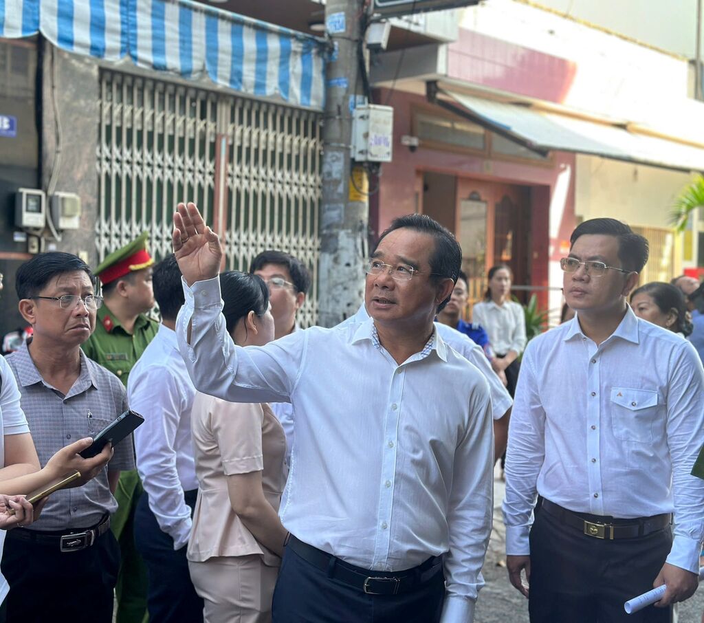 | Le président du Comité populaire de Hô Chi Minh-Ville Nguyen Van Duoc, s’est rendu sur les lieux de l’incident pour exprimer ses condoléances, soutenir les familles des victimes et diriger les efforts de secours. |