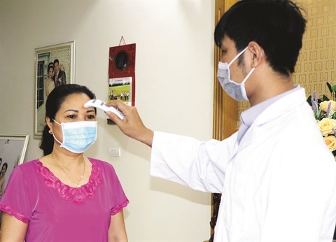 | Contrôle de température d'une habitante à Ha Long, province |