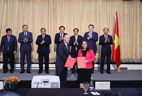 | Cérémonie de signature d'accords de coopération entre des entreprises vietnamiennes et américaines. |