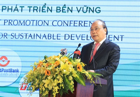 | Le Premier ministre Nguyên Xuân Phuc s'exprime à la conférence de promotion de l’investissement de la province de Vinh Long, le 27 mars dans la ville de Vinh Long. |