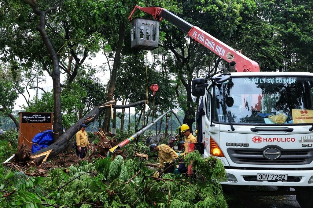 | Réparation d'incidents électriques après le passage du typhon Yagi. |