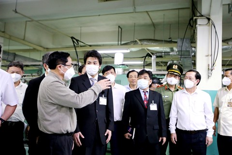 | Le Premier ministre a travaillé avec les dirigeants de la compagnie Nissei Electric Vietnam sur la prévention du COVID-19. |