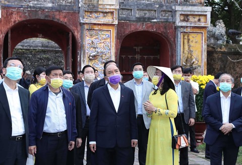 | Le Premier ministre Nguyên Xuân Phuc (centre) inspecte vendredi 7 février la lutte contre la maladie respiratoire aiguë causée par le nouveau coronavirus (nCoV) dans la province centrale de Thua Thiên-Huê. |